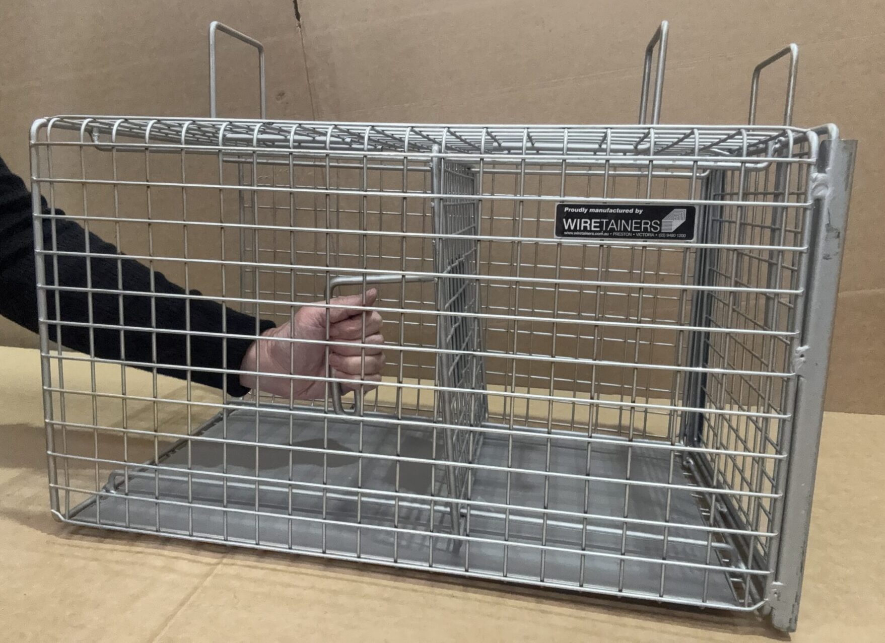 I just wanted to show my appreciation that after catching over 30 cats within the last month, the purchase of the traps and crush cages from Wiretainers in Victoria is the best thing. With the ease of setting the traps and fixing bait through the sliding door at the end has made my job so much quicker and easier. The ability to attach the cage to the end of the trap enables me to easily transfer the cat into the cage and reset the trap there and then where the cats are an issue. Saving time and travel. The crush cage (sounds terrible but isn’t) can then be used to restrict the movement of the caught cat to firstly scan for ID. The new cages and traps are so much more efficient to catch and transfer cats that we should be able to concentrate on catching more unowned cats. I can honestly say that the purchases have certainly assisted in the timely manner in which we can respond and remove the cat issues by setting more traps at a time at suggested sites and money well spent.